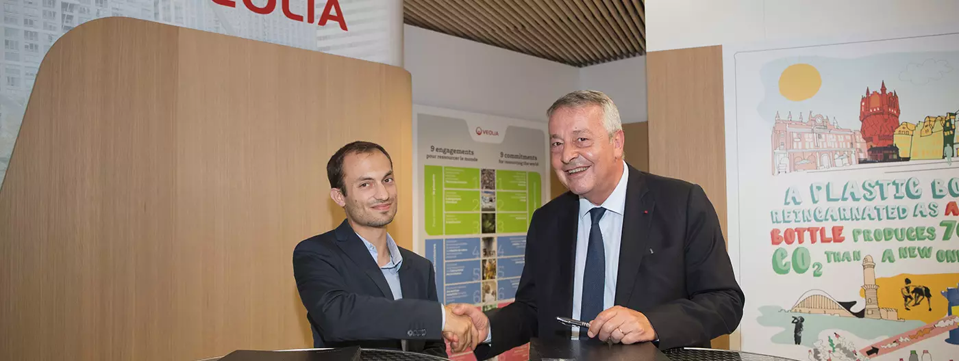 Aurélien Cadiou, President of the Association Nationale des Apprentis de France (ANAF) and Antoine Frérot, Veolia Chairman and CEO, today signed a partnership agreement at the Group's headquarters in Aubervilliers. The goal is to promote communication on apprenticeships and help support apprentices in the Veolia Campus network.