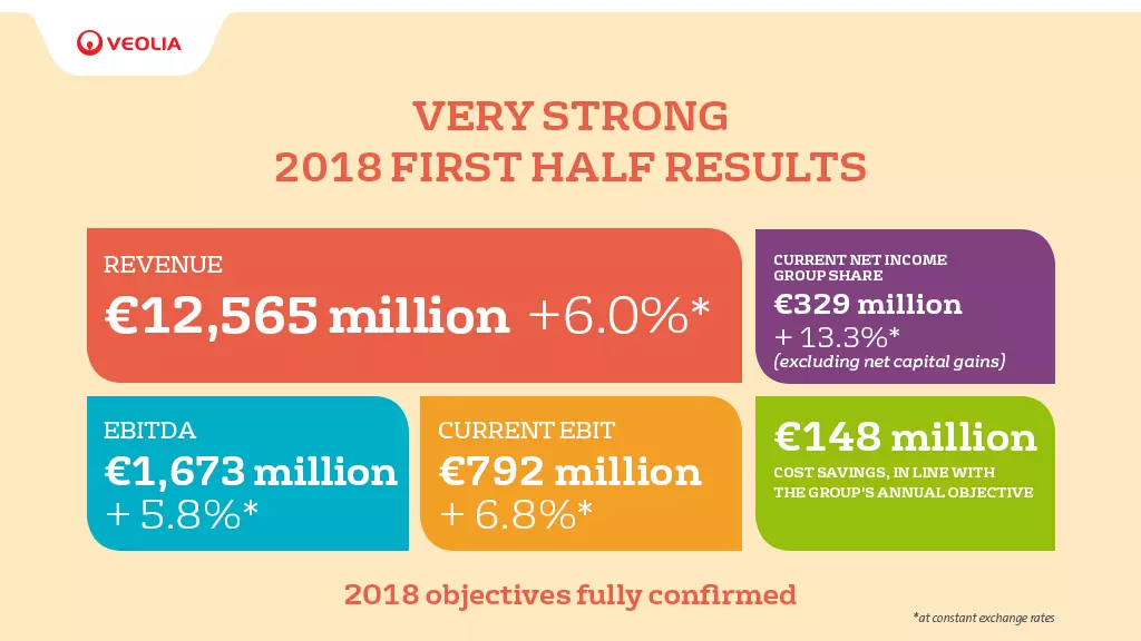 With these good results, Veolia fully confirms its objectives for the whole of 2018.