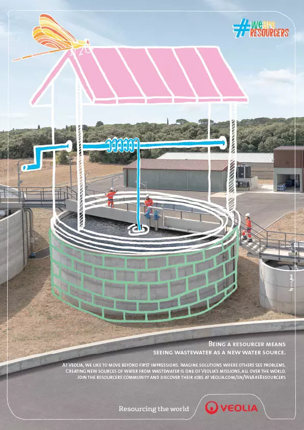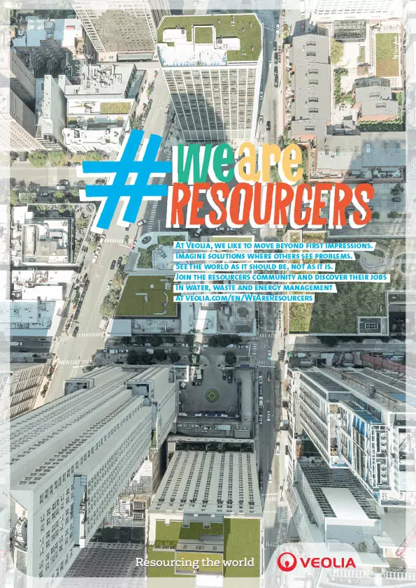 This notion is conveyed in the #WeAreResourcers employer brand campaign simultaneously launched today at headquarters and in five countries: Germany, China, France, the Czech Republic and the United Kingdom. Its aim is to highlight the commitment of the 168,800 Group employees in a positive and special universe: combining reality and imagination, the campaign shows that being Resourcer means "seeing the world as it should be, and not only as it is". So Resourcers see valuable materials in waste, a new source of water in wastewater and a new source of energy in a building’s lost energy.