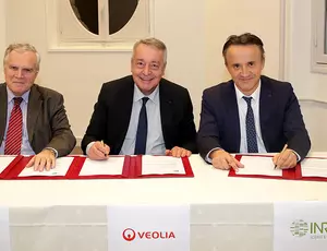 Antoine Frérot, Veolia Chairman and CEO, Philippe Mauguin, CEO of the Institut National de la Recherche Agronomique, and Marc Michel, President of the Institut National de Recherche en Sciences et Technologies pour l'Environnement et l’Agriculture, yesterday signed a five-year framework agreement to continue their collaboration in the service of sustainable agriculture. Among the stated objectives was recovering the agronomic potential of soils using compost from the circular economy.