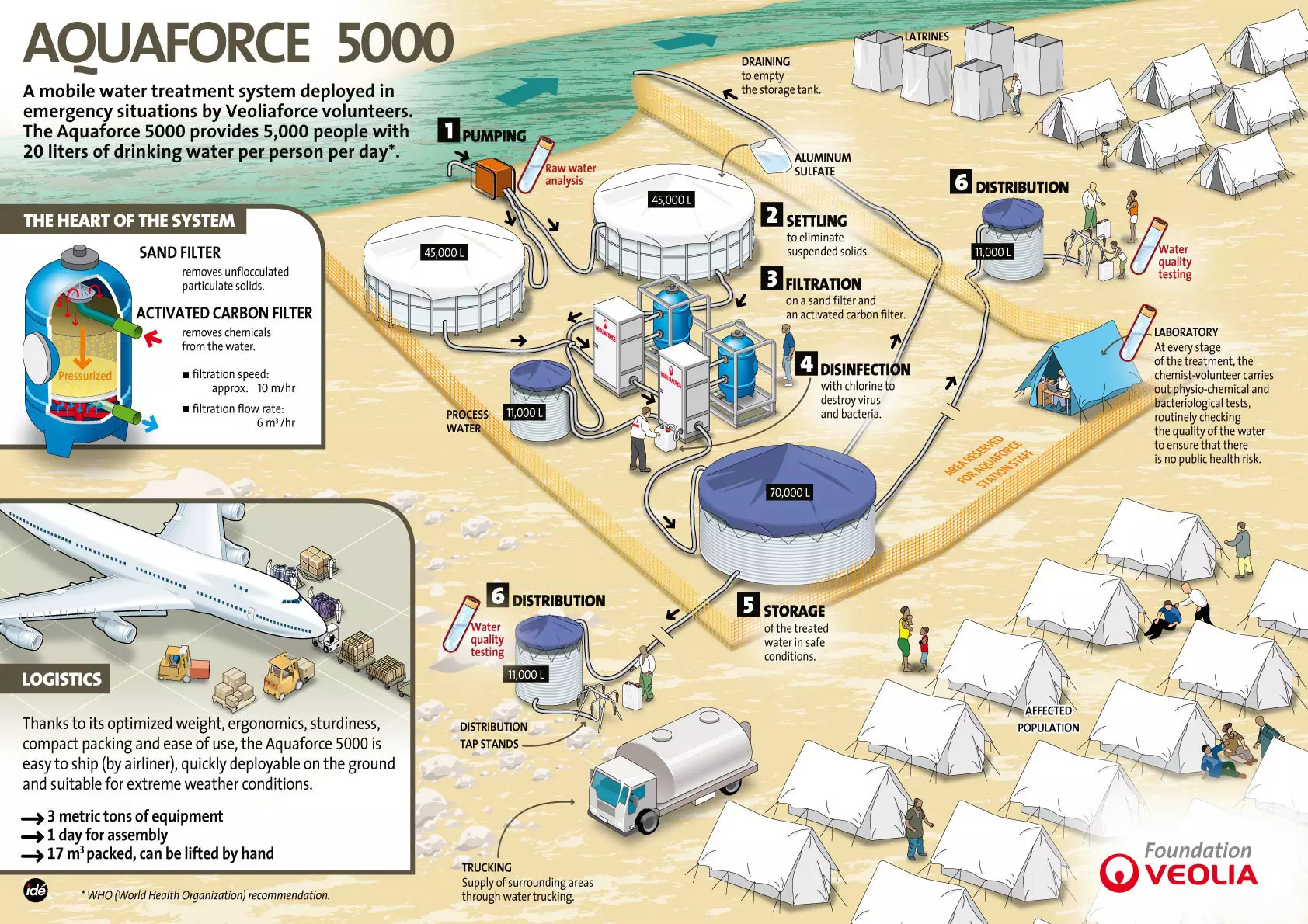 - 6 Aquaforce 500 water purification units, with a capacity of 2 m3 per hour each