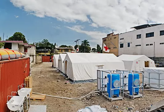 In the aftermath of the powerful earthquake that devastated Port-au-Prince on 12 January 2010, the Veolia Foundation joined the French Red Cross to supply over 30 tonnes of drinking water production and distribution equipment. A team of 9 Veoliaforce experts worked on the spot to assess the water and sanitation needs in the priority areas and supervise the deployment of several Aquaforce 5000 units in the capital.