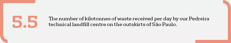 At the Pedreira technical landfill centre, Veolia handles 5,500 tonnes of solid waste a day - 60% from Sao Paulo, 25% from industrial and tertiary businesses in the region and 15% from other cities in the urban area.