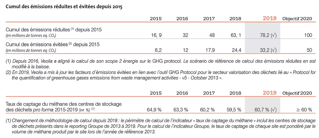L’engagement climat de Veolia est notamment suivi à travers deux indicateurs de sa performance plurielle :