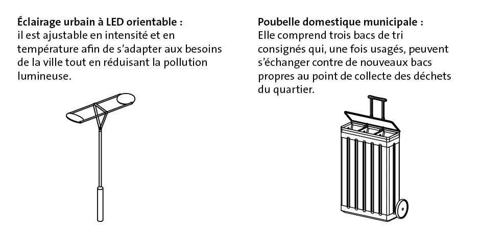 On y trouve des points de collecte pour le tri des déchets, des points d’information concernant la qualité du tri effectué dans le quartier, des points de vente de produits d’usage courant issus du recyclage ou des objets reconditionnés. On y organise des visites, des conférences et des projections.